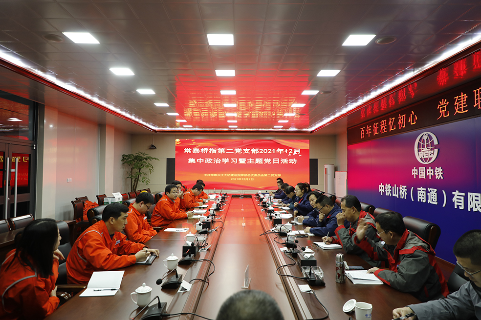 为深入贯彻学习党的十九届六中全会精神和江苏省第十四次党代会精神。进一步强化党建引领作用,推动党建工作融入常泰长江大桥生产建设,加强交流开拓思路,促进党建工作全面